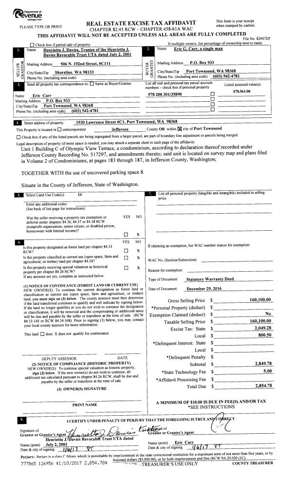 | 3 | 04/12/2016 | SWD | Statutory Warranty Deed | W E SETON & MARILYN SETON RECOVABLE TRUST | BARBARA KURLAND | | | $38,500.00 | 125199 | |