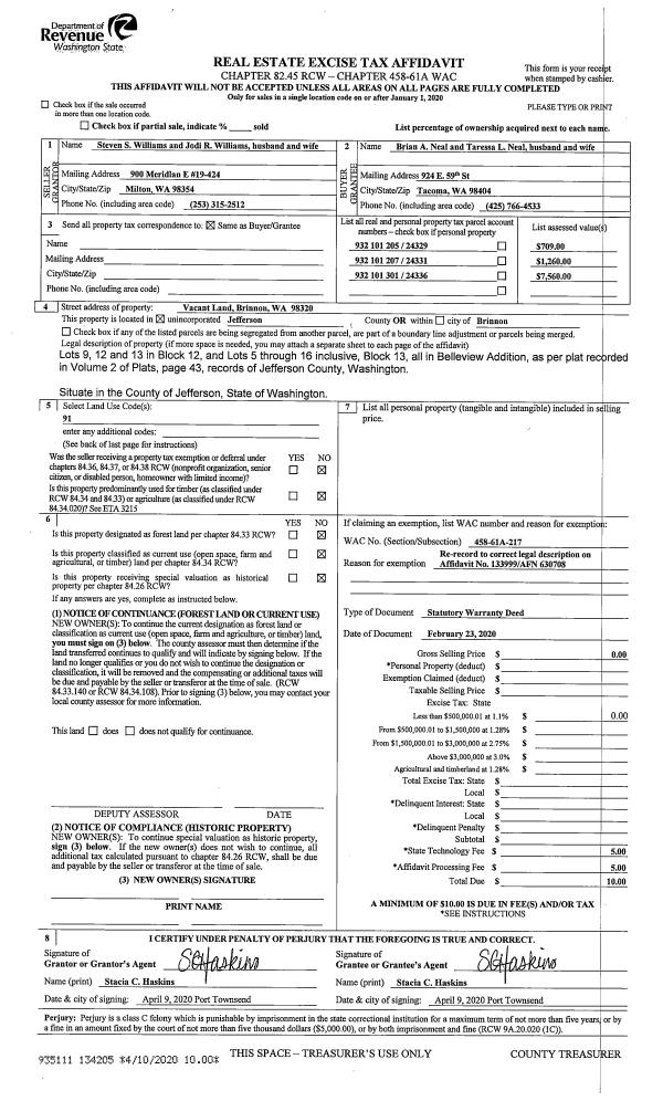 | 1 | 12/22/2020 | SWD | Statutory Warranty Deed | BRENT GARRETT | JASON & TARRA DICKSON | | | $37,500.00 | 135832 | |