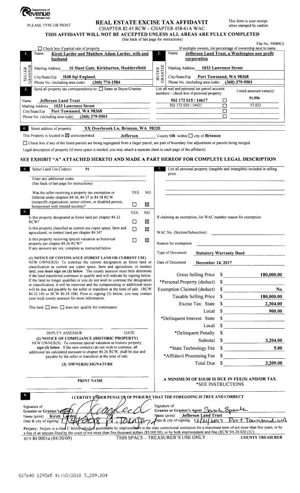 | 4 | 07/19/2005 | SWD | Statutory Warranty Deed | JACOBSEN LAND PARTNERSHIP | JACOBSEN, KARL/SANDRA/PAUL/ | | | $0.00 | 104295 | 0 |