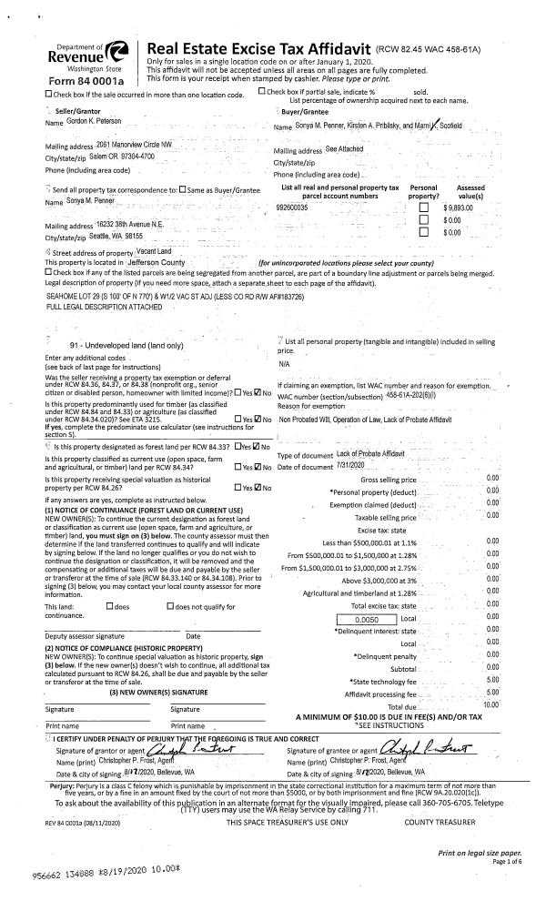 | Mailing Address: | 21 S WHITE FIR WAY PORT HADLOCK, WA 98339-8726 | % Ownership: | 100.0000000000% |