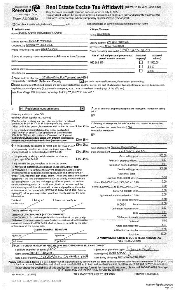 | Mailing Address: | PO BOX 238 PORT HADLOCK, WA 98339-0238 | % Ownership: | 100.0000000000% |