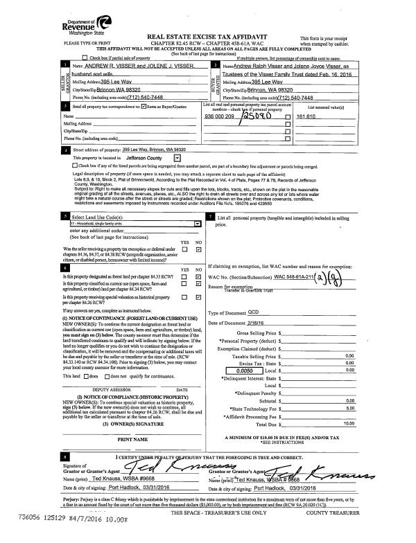 | Mailing Address: | 221 WASHINGTON LN PORT HADLOCK, WA 98339-9786 | % Ownership: | 100.0000000000% |