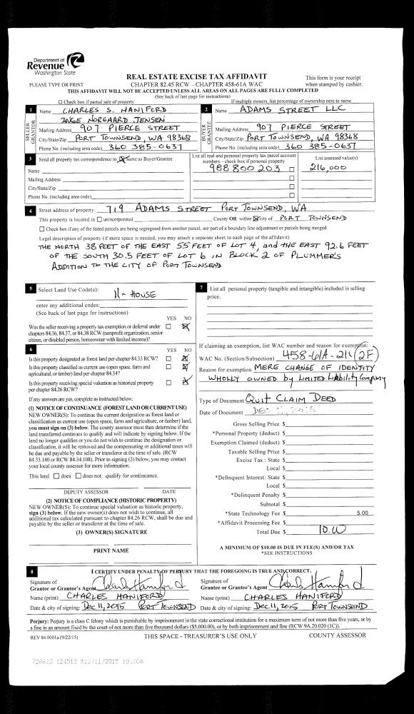 | Mailing Address: | 440 CLEVELAND STREET PORT HADLOCK, WA 98339 | % Ownership: | 100.0000000000% |