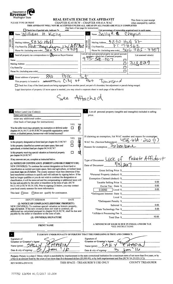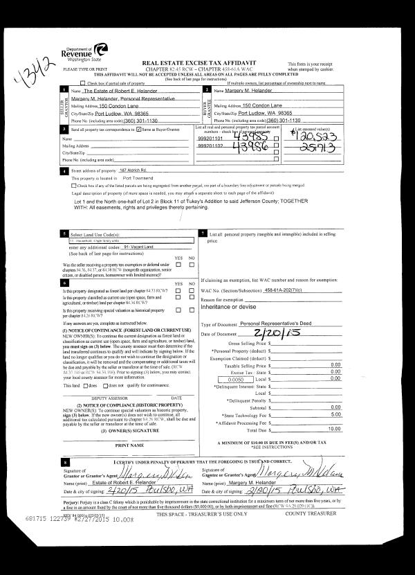 | Mailing Address: | 360 CLEVELAND ST PORT HADLOCK, WA 98339-9724 | % Ownership: | 100.0000000000% |