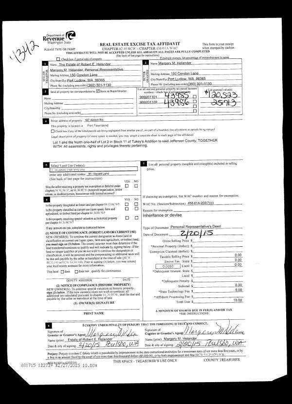 | Mailing Address: | 360 CLEVELAND ST PORT HADLOCK, WA 98339 | % Ownership: | 100.0000000000% |