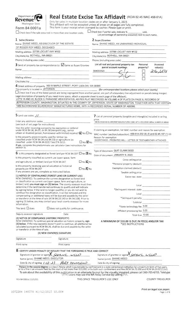 | 1 | 08/30/2017 | SWD | Statutory Warranty Deed | BRETT D ANGLIN | CRAIG VAN NESS | | | $50,000.00 | 128461 | |