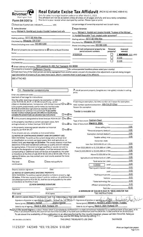 | Mailing Address: | LARRY J & ANN N PANUSH TRUSTEES 40 CLEVELAND ST PORT HADLOCK, WA 98339-9712 | % Ownership: | 100.0000000000% |