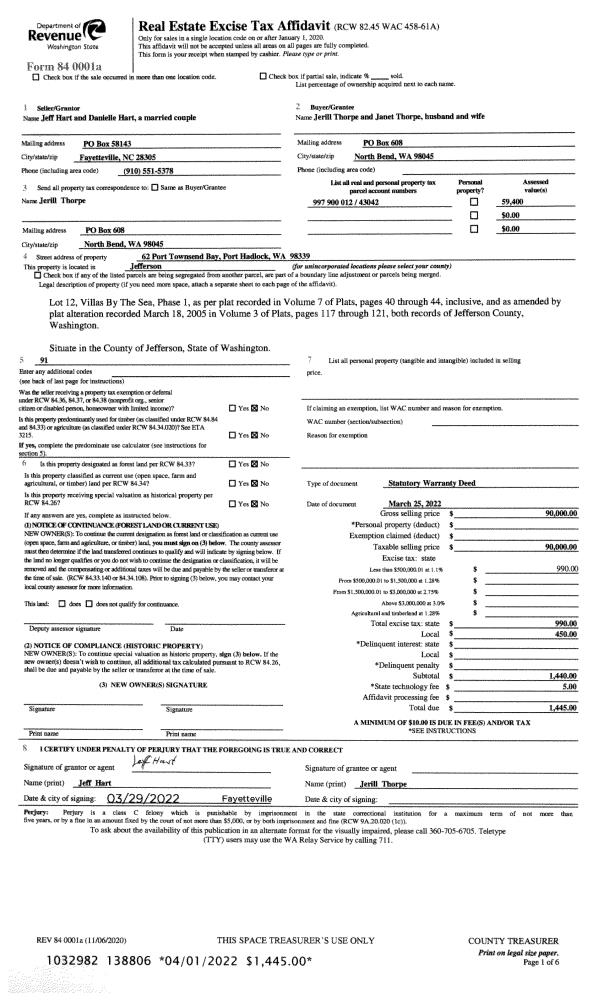 | Mailing Address: | 262 GOLDENVIEW DR PORT HADLOCK, WA 98339-5003 | % Ownership: | 100.0000000000% |