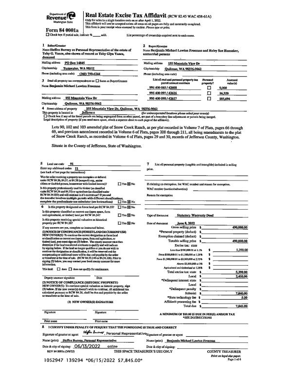 | 4 | 12/17/1993 | TXD | Tax Deed | JEFFERSON COUNTY | BISHOP BROTHERS CONSTRUCTION | 0 | 0 | $0.00 | 72900 | 0 |