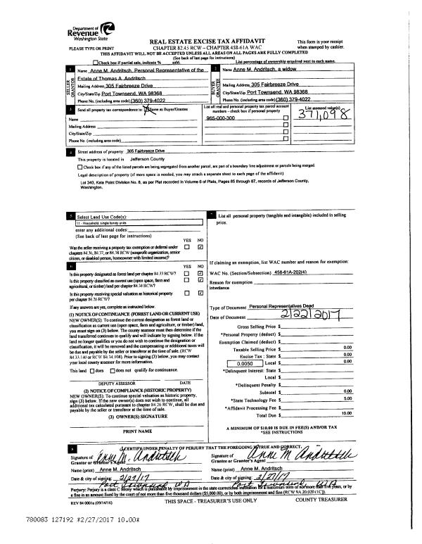 | Mailing Address: | 500 CHERRY AVE CHIMACUM, WA 98325-8727 | % Ownership: | 100.0000000000% |