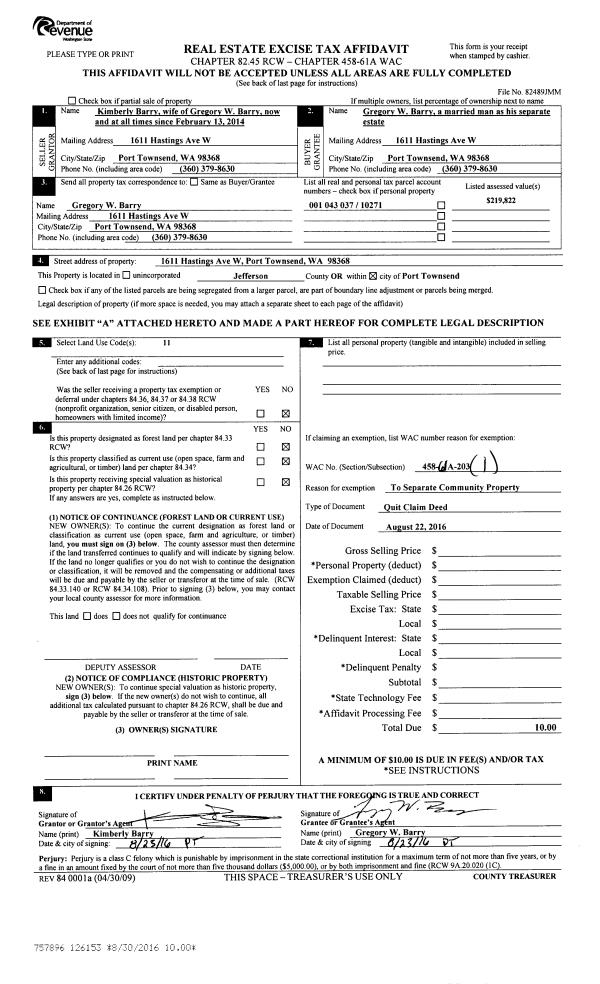 | Mailing Address: | 62 RHODY CT CHIMACUM, WA 98325-8723 | % Ownership: | 100.0000000000% |
