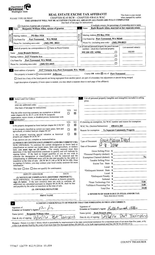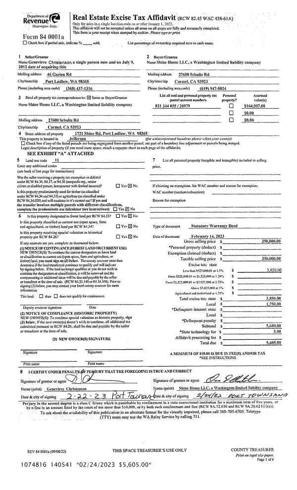 | Mailing Address: | PO BOX 33 CHIMACUM, WA 98325-0033 | % Ownership: | 100.0000000000% |