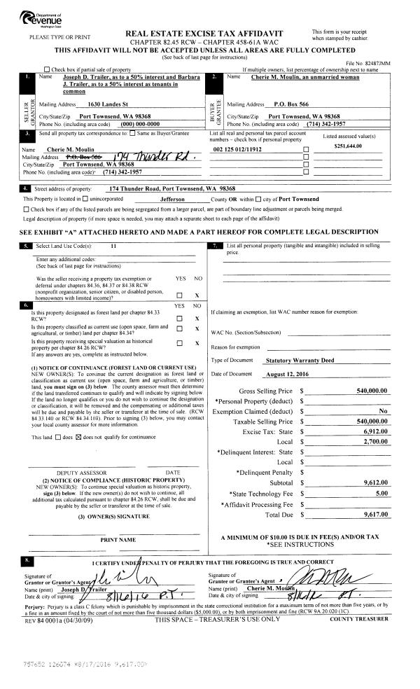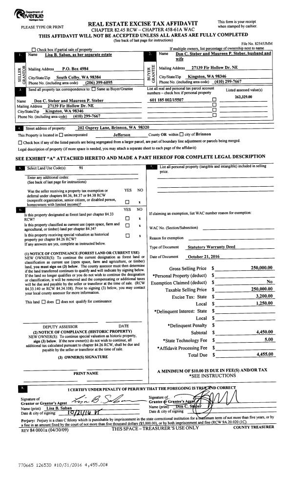 | 6 | 10/27/2000 | SWD | Statutory Warranty Deed | HINEN, NORMAN L/TRUST | MCKENZIE, ELDEN D/SHARON F | 0 | 0 | $10,000.00 | 90892 | 0 |