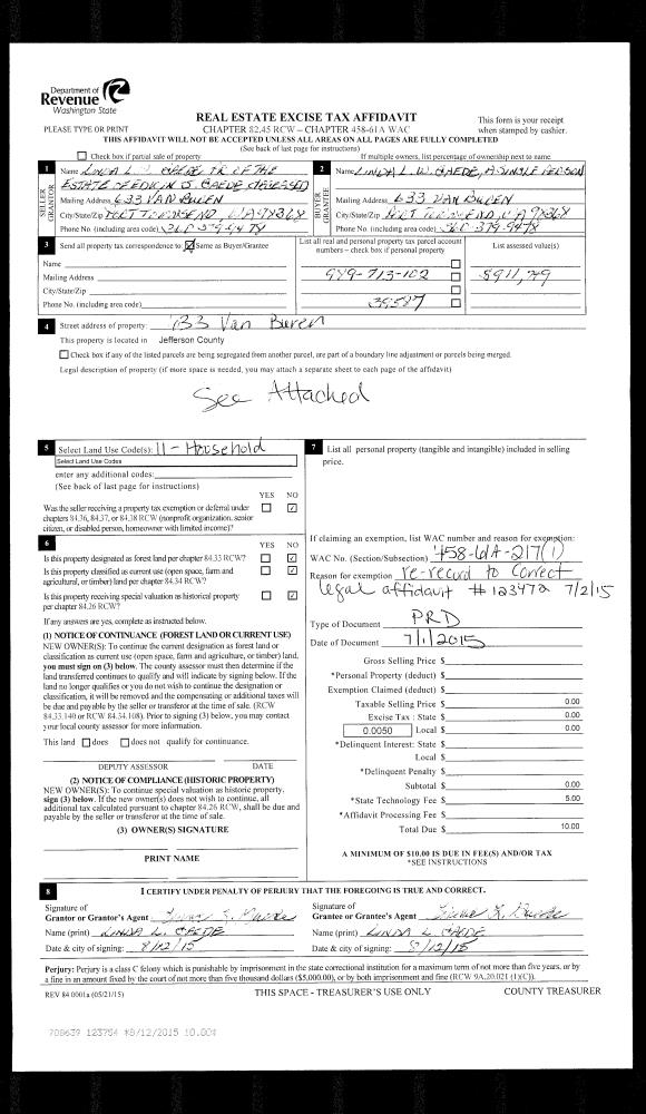 | 1 | 05/04/2016 | QCD | Quit Claim Deed | JAMES L DAVIS | ARCADIA PROPERTIES LLC | | | | 125385 | |