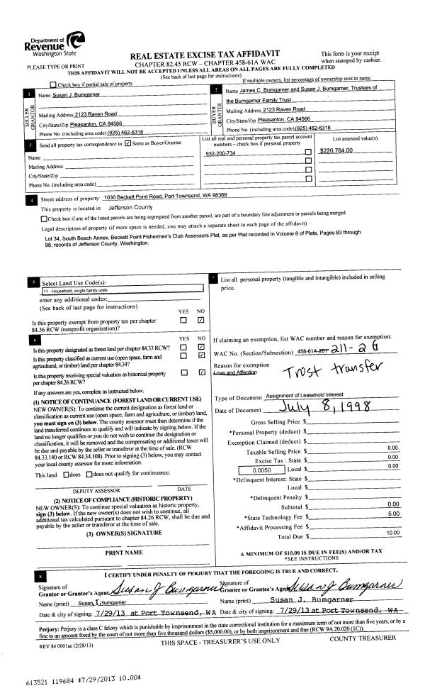 | Mailing Address: | PO BOX 2014 PORT TOWNSEND, WA 98368-0089 | % Ownership: | 100.0000000000% |