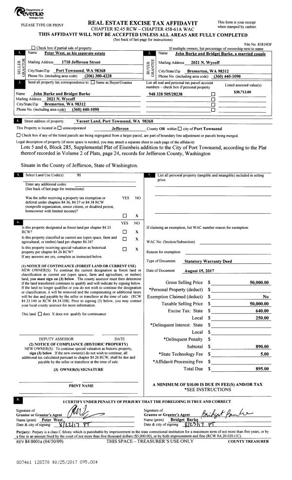 | Mailing Address: | MARLENE J ERICSEN 181 N PALMER DR PORT TOWNSEND, WA 98368-9535 | % Ownership: | 100.0000000000% |