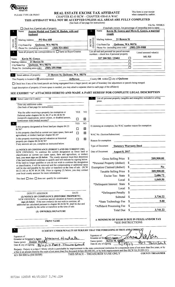 | Mailing Address: | 162 ASH LOOP PORT TOWNSEND, WA 98368-9225 | % Ownership: | 100.0000000000% |