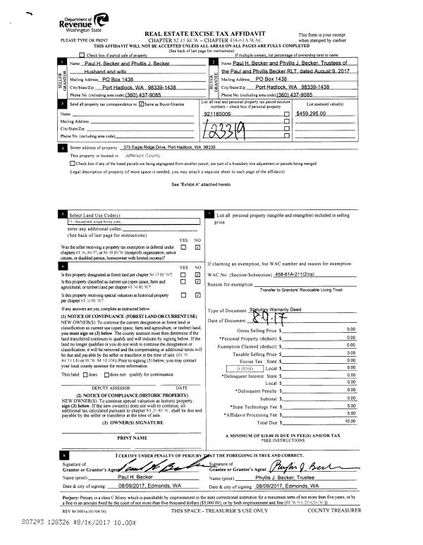 | Mailing Address: | 124 ASHLOOP PORT TOWNSEND, WA 98368-9225 | % Ownership: | 100.0000000000% |