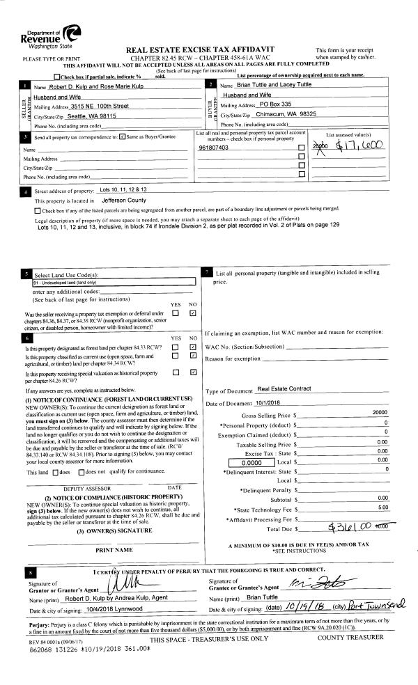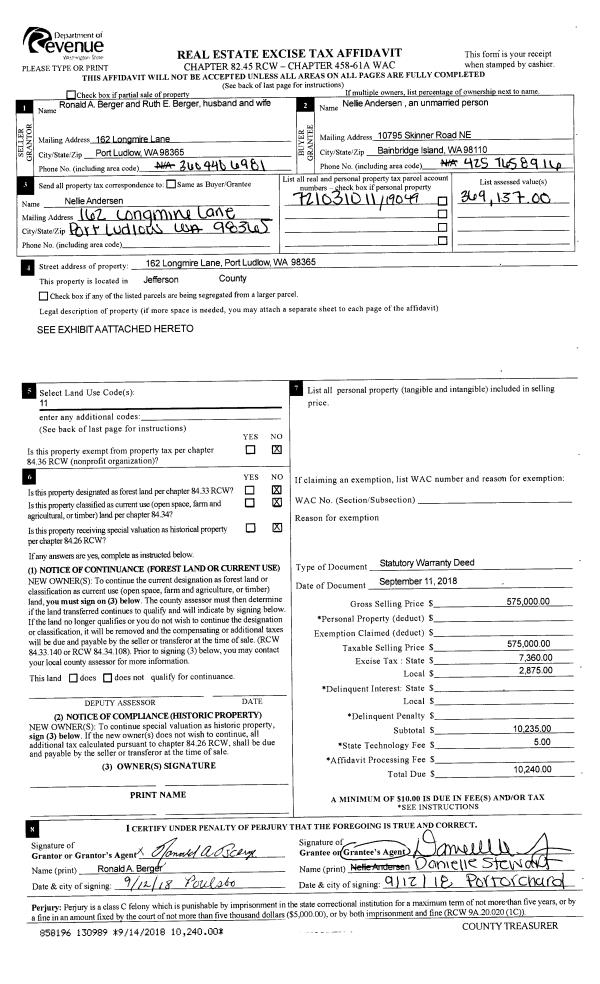 | 1 | 10/20/2020 | SWD | Statutory Warranty Deed | EVERYTHING ELSE TOO LLC | CAPE GEORGE LAND CO LLC | | | $350,000.00 | 135411 | |