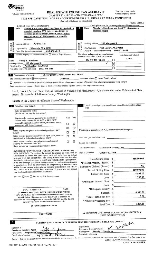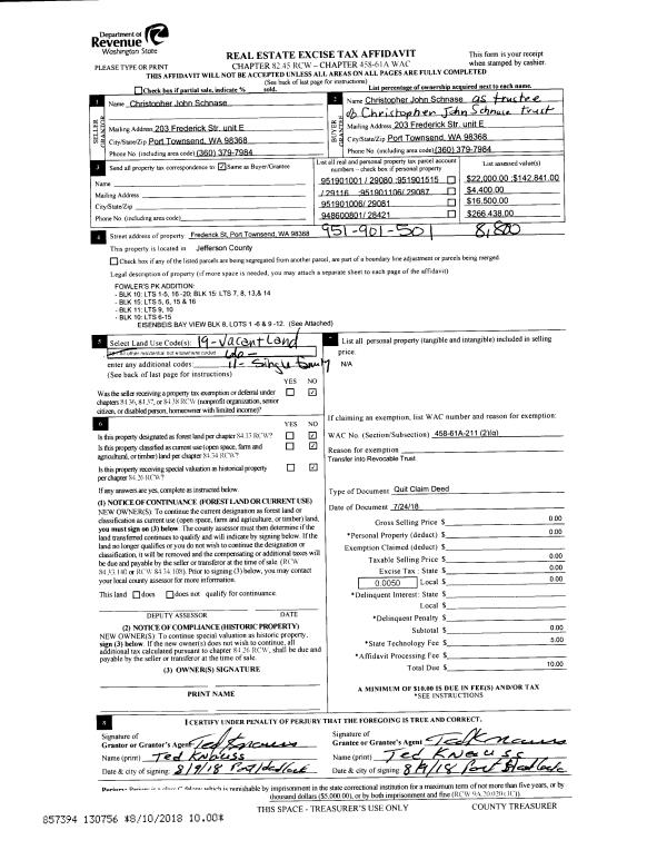 | 1 | 10/20/2020 | SWD | Statutory Warranty Deed | EVERYTHING ELSE TOO LLC | CAPE GEORGE LAND CO LLC | | | $350,000.00 | 135411 | |