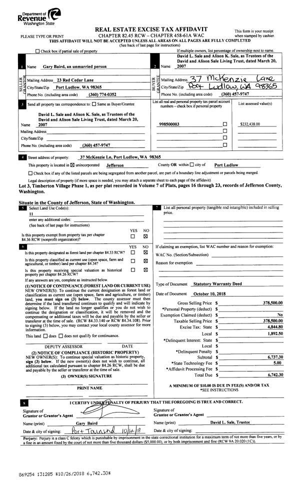 | 1 | 10/20/2020 | SWD | Statutory Warranty Deed | EVERYTHING ELSE TOO LLC | CAPE GEORGE LAND CO LLC | | | $350,000.00 | 135411 | |