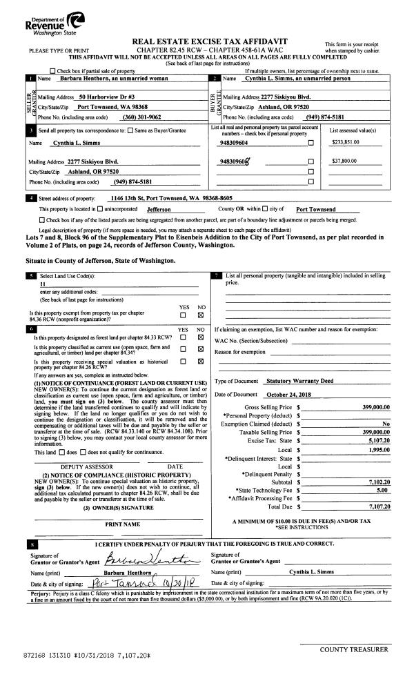 | 1 | 10/20/2020 | SWD | Statutory Warranty Deed | EVERYTHING ELSE TOO LLC | CAPE GEORGE LAND CO LLC | | | $350,000.00 | 135411 | |