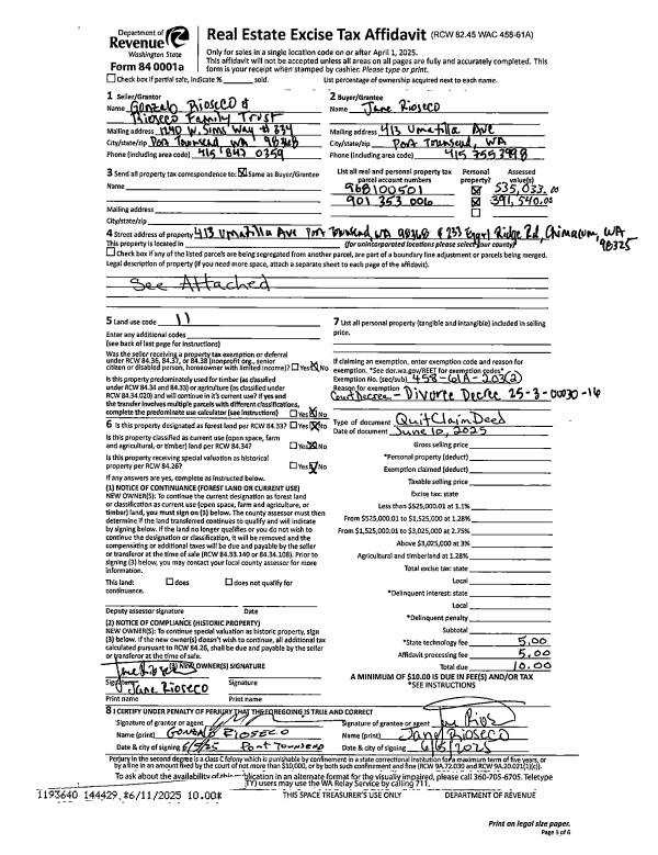 | Mailing Address: | 51 VISTA BLVD PORT TOWNSEND, WA 98368 | % Ownership: | 100.0000000000% |