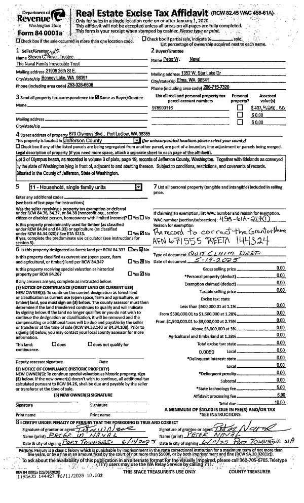 | 1 | 07/25/2024 | QCD | Quit Claim Deed | JOHN B POWERS | J B POWERS TRUST | | | | 142943 | |