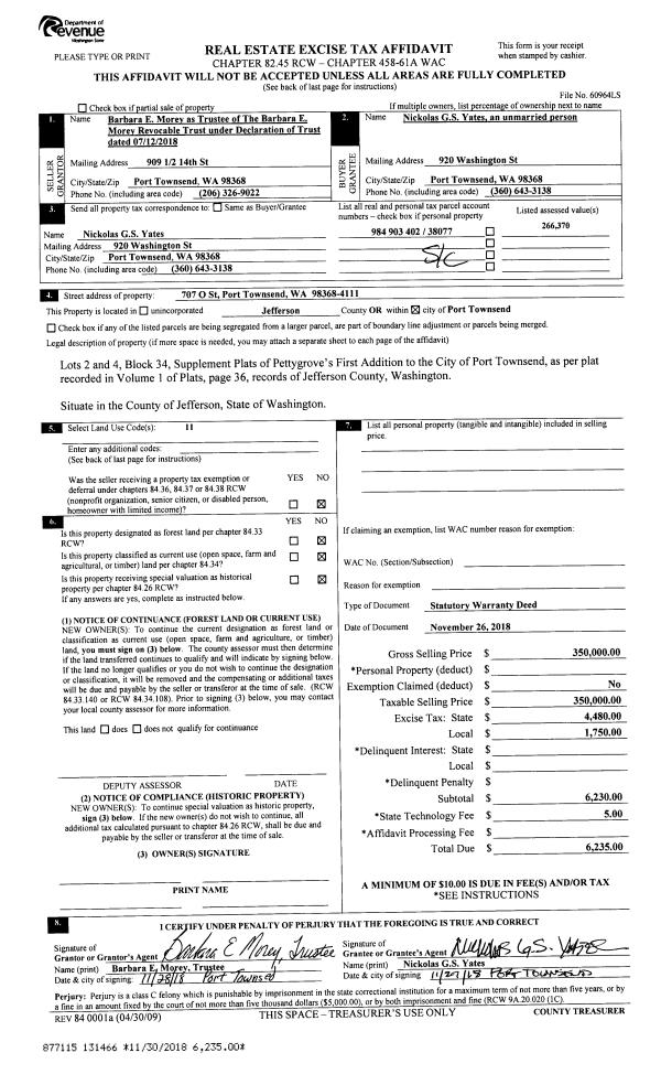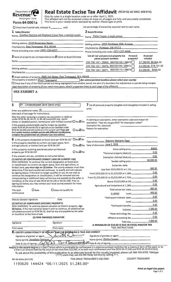| Mailing Address: | 121 VISTA BLVD PORT TOWNSEND, WA 98368-3070 | % Ownership: | 100.0000000000% |