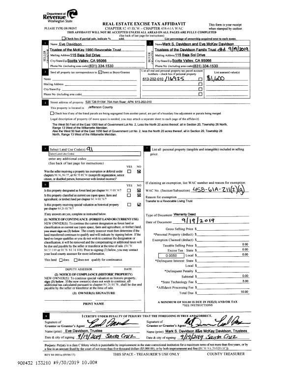 | 1 | 07/29/2015 | QCD | Quit Claim Deed | JON K MORRISON TESTAMENTARY TRUST | TWENTY TEN LLC | | | | 123731 | |