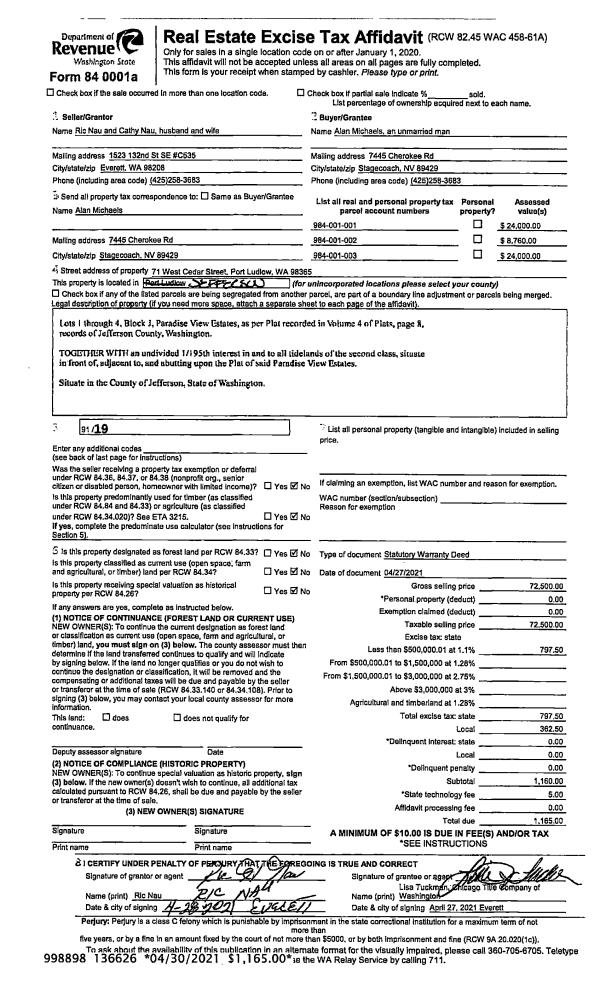 | 1 | 06/16/2021 | SWD | Statutory Warranty Deed | THERESA J CAMPBELL | ANDREW J & IVY E NELSON | | | $550,000.00 | 137064 | |