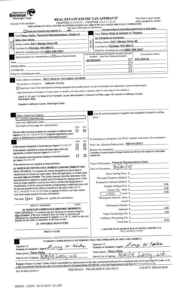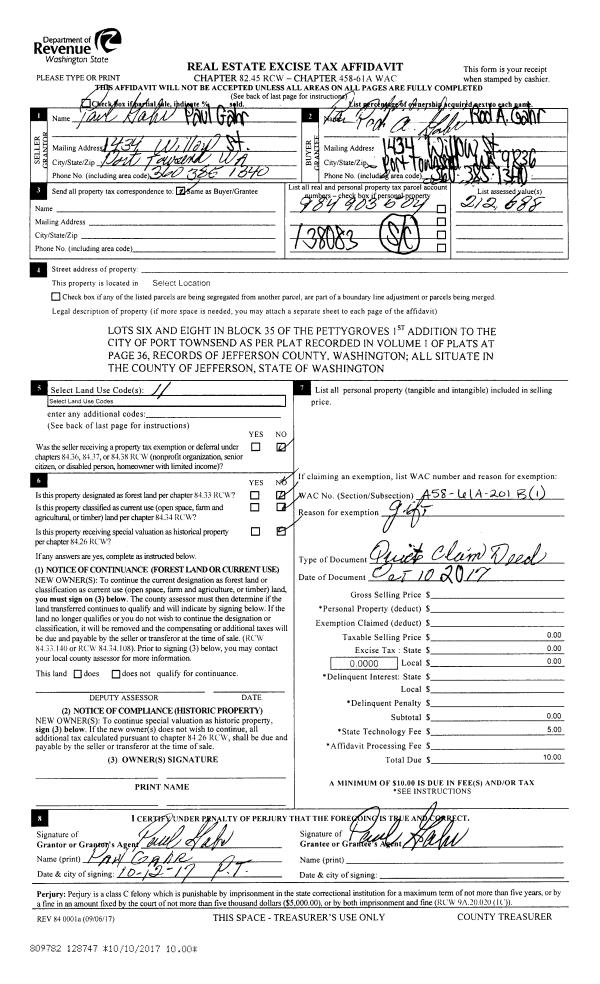 | Mailing Address: | 2542 HOWARD ST PORT TOWNSEND, WA 98368-6865 | % Ownership: | 100.0000000000% |