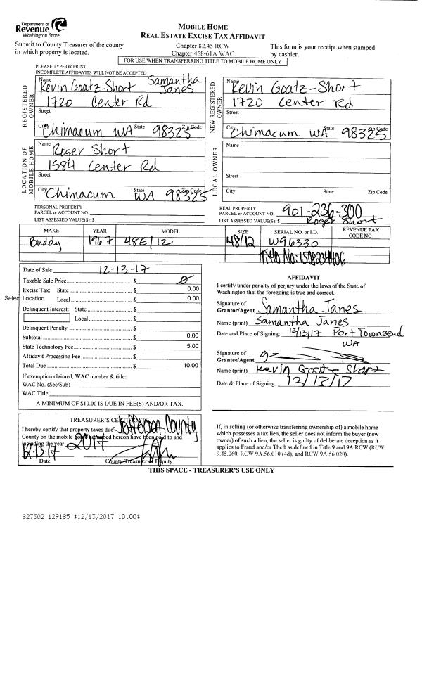 | Mailing Address: | 283 FERN RD PORT ANGELES, WA 98362-9270 | % Ownership: | 100.0000000000% |