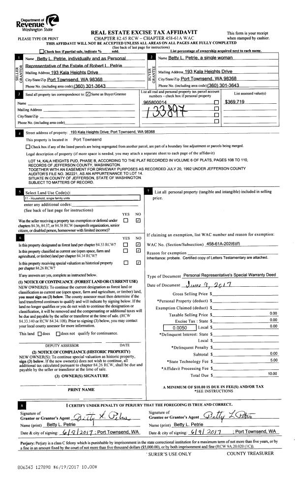 | 3 | 08/09/2018 | PRD | Personal Representatives Deed | | | | | | 130782 | |