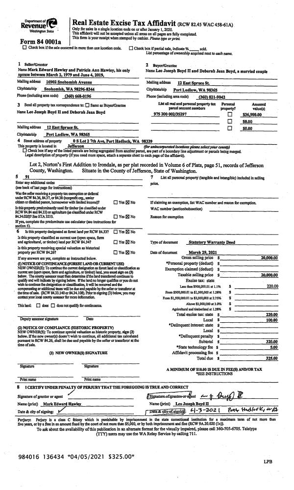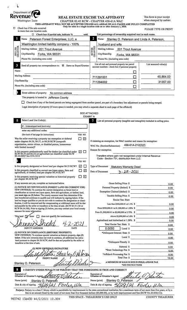| Mailing Address: | 91 CYPRESS CIR PORT ANGELES, WA 98362-9104 | % Ownership: | 100.0000000000% |
