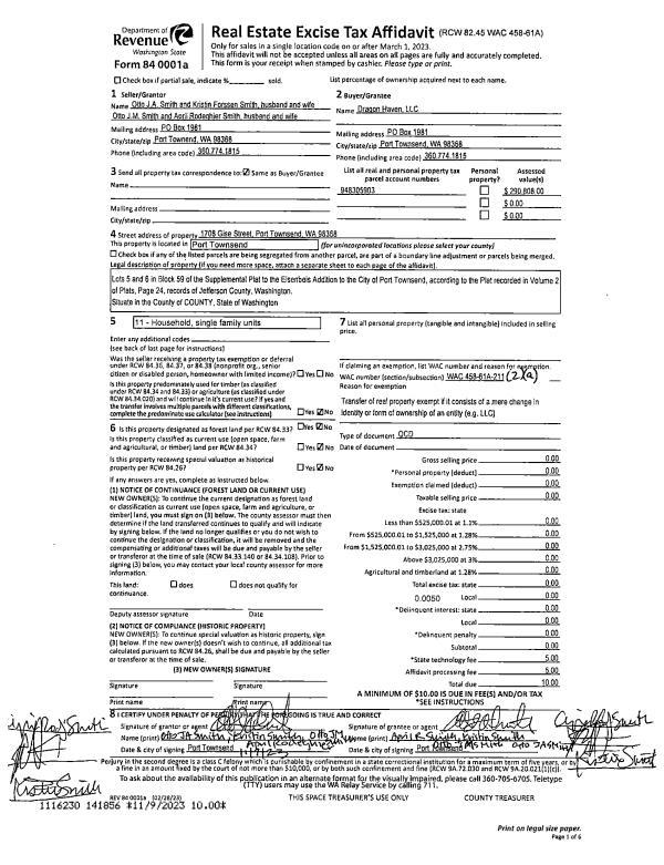 | Mailing Address: | HARVEY G PUTTERMAN 111 SADDLETREE DR PORT TOWNSEND, WA 98368-9537 | % Ownership: | 100.0000000000% |