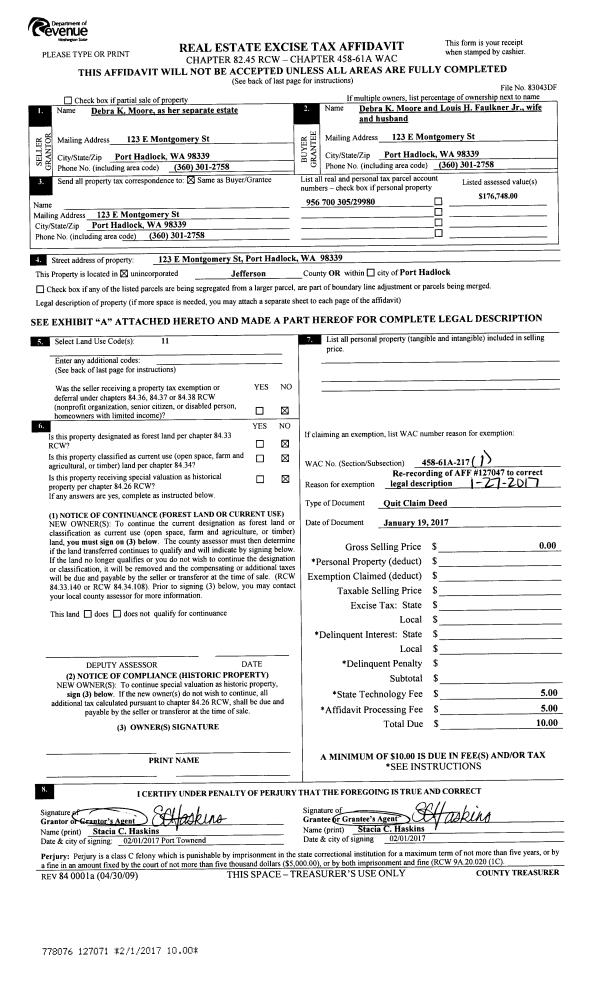 | Mailing Address: | LAURA D GIPSON 42 ALDERWOOD PL PORT TOWNSEND, WA 98368-9512 | % Ownership: | 100.0000000000% |