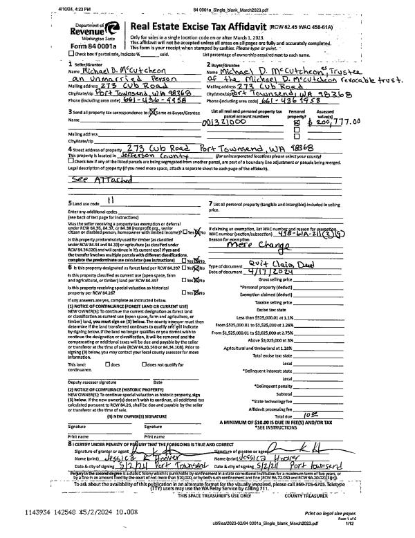 | Mailing Address: | 60 WINDSHIP DR PORT TOWNSEND, WA 98368-9545 | % Ownership: | 100.0000000000% |
