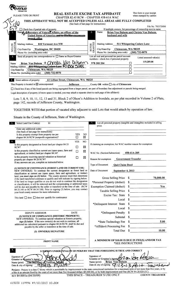| 1 | 10/20/2014 | SWD | Statutory Warranty Deed | PAIGE C WATSON | WILLIAM & DARLENE KRAUSE | | | $200,000.00 | 122148 | |