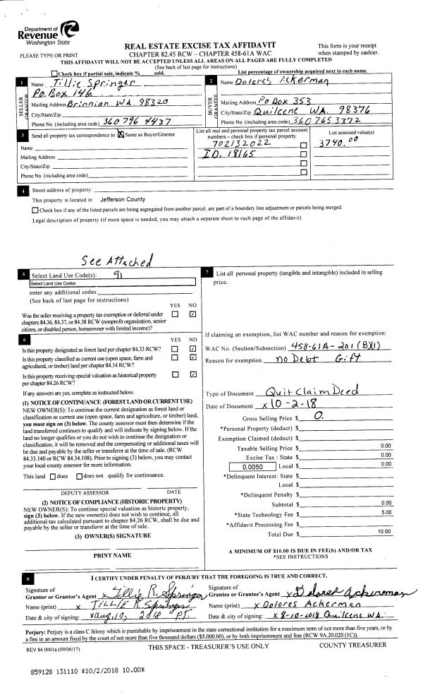 | 4 | 08/15/2003 | SWD | Statutory Warranty Deed | JOHNSON, VERNON M/MARIE M | MCNULTY, LAWRENCE/CAROLINE | 0 | 0 | $38,000.00 | 98063 | 0 |
