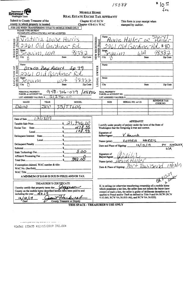 | Mailing Address: | 60 NANTUCKET PL PORT TOWNSEND, WA 98368-9533 | % Ownership: | 100.0000000000% |