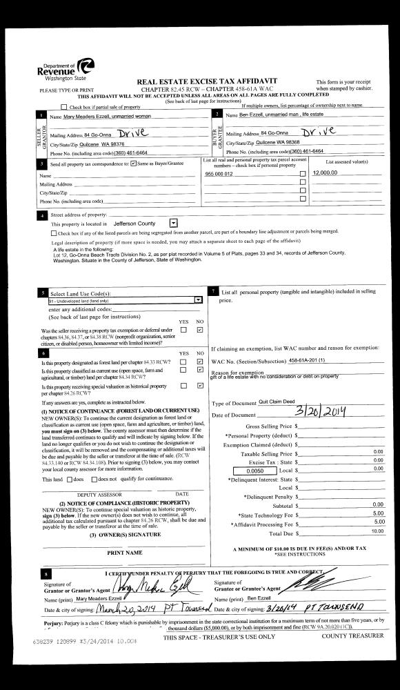 | Mailing Address: | SHARON M CARTER TRUSTEE 92 BAYCLIFF DR PORT TOWNSEND, WA 98368-9587 | % Ownership: | 100.0000000000% |