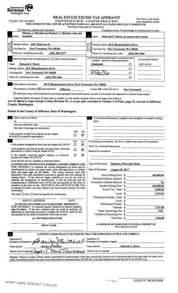 | 5 | 07/15/2002 | SWD | Statutory Warranty Deed | RALPH E MORTON | EDWARD E/BARBARA L ZINSER | 0 | 0 | $75,675.00 | 95109 | 0 |