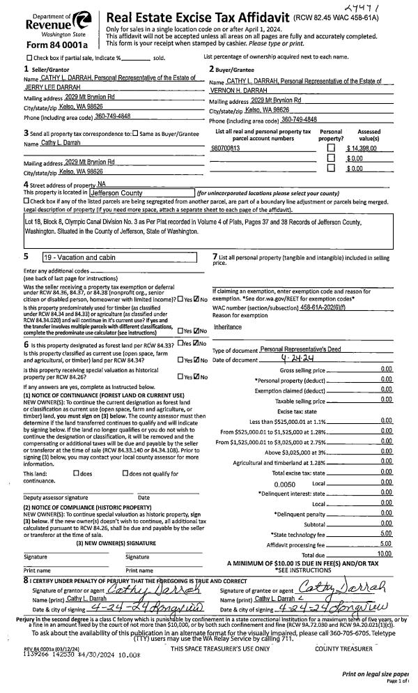 | Mailing Address: | 18 BLENHEIM PL PORT TOWNSEND, WA 98368-9515 | % Ownership: | 100.0000000000% |
