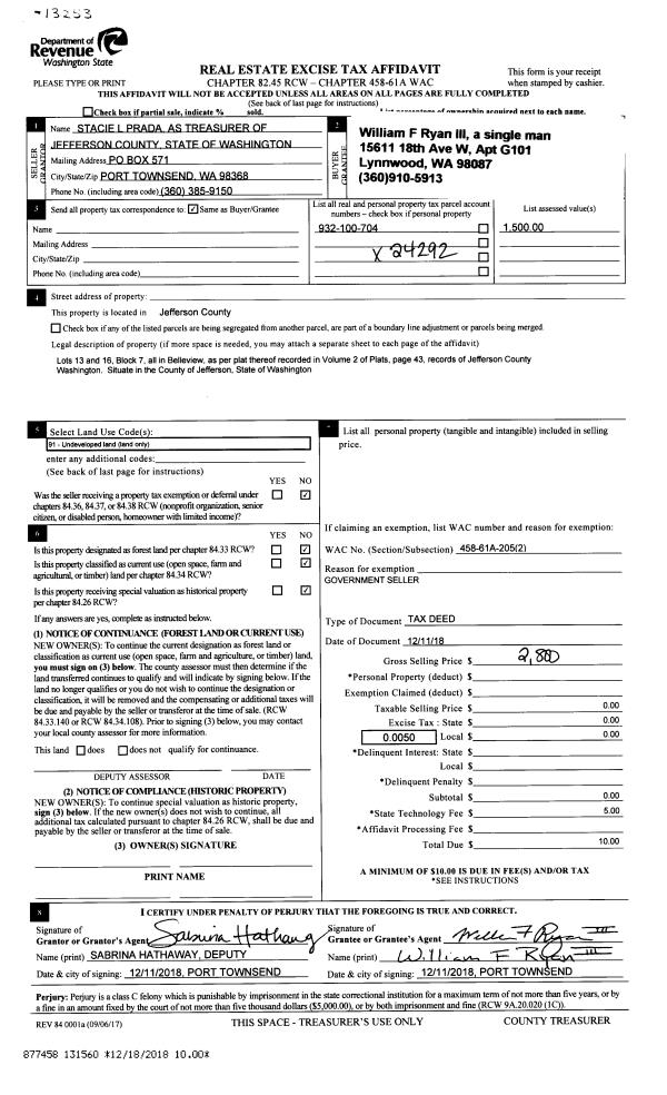 | Mailing Address: | 30 DUNRAVEN PL PORT TOWNSEND, WA 98368 | % Ownership: | 100.0000000000% |