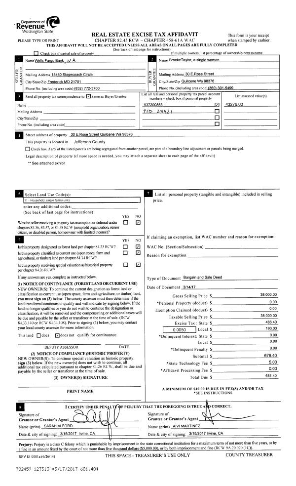 | 3 | 09/13/2016 | SWD | Statutory Warranty Deed | ALEX PEREL | THOMAS A & LINDA J LEMANSKI | | | $59,500.00 | 126249 | |