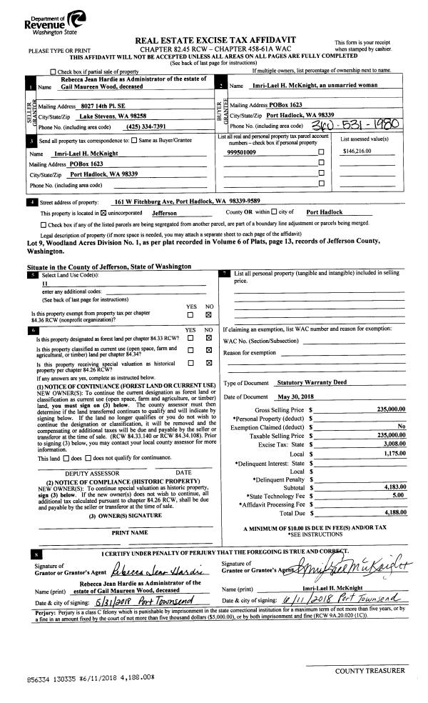 | 1 | 08/20/2018 | SWD | Statutory Warranty Deed | ROBERT TREIBEL | GARY OBERMEYER & KATHRYN LORE | | | $58,250.00 | 130870 | |