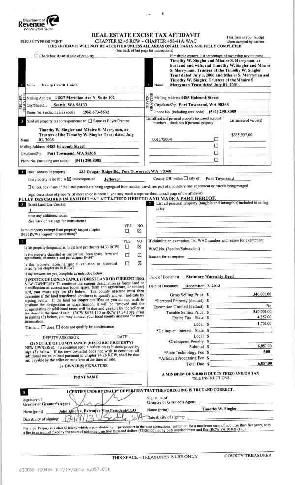 | Mailing Address: | GEORGE R & LINDA S MARCIANO TRUSTEES 70 TRAFALGAR DR PORT TOWNSEND, WA 98368 | % Ownership: | 100.0000000000% |