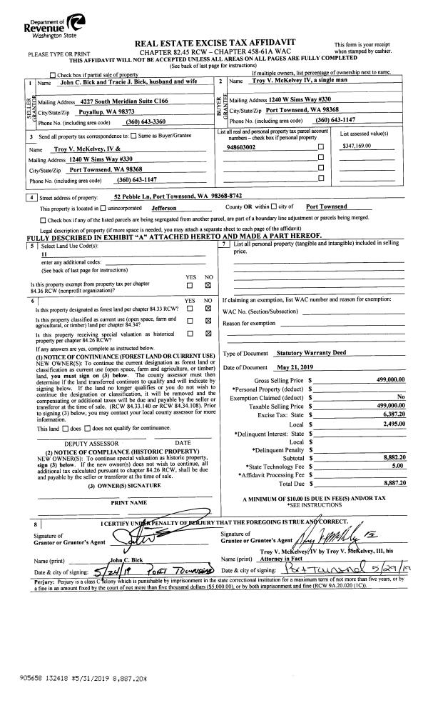 | 2 | 08/27/2019 | SWD | Statutory Warranty Deed | WICKSTROM SURVIVORS TRUST | JEAN PIERRE LELARGE | | | $715,000.00 | 133136 | |