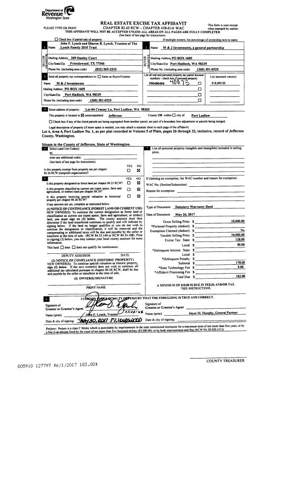| 1 | 03/14/2018 | SWD | Statutory Warranty Deed | RAYMOND & GRETCHEN THOMPSON | MICHAEL HARTE & CINDY GRIFFIN | | | $482,500.00 | 129777 | |